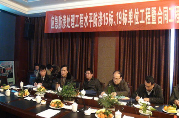 2012年1月9日,江西省五河及鄱陽湖區重點圩堤應急防滲工程建設項目部在南昌縣主持召開了應急防滲工程水平防滲15標單位工程暨合同工程完工驗收會,并順利通過了單位工程暨合同工程完工驗收。驗收會由省河湖局郭澤杰局長主持,并發表了重要講話。公司吳鐵凡總工程師、工程部郭洪有部長參加了驗收會。
