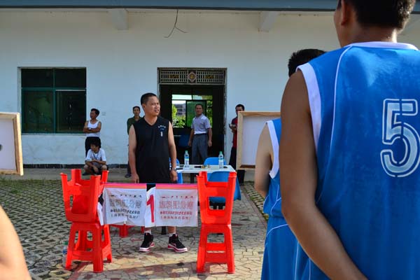 金灘鎮(zhèn)黨委書記京海華宣布“江西水建杯”籃球賽開始