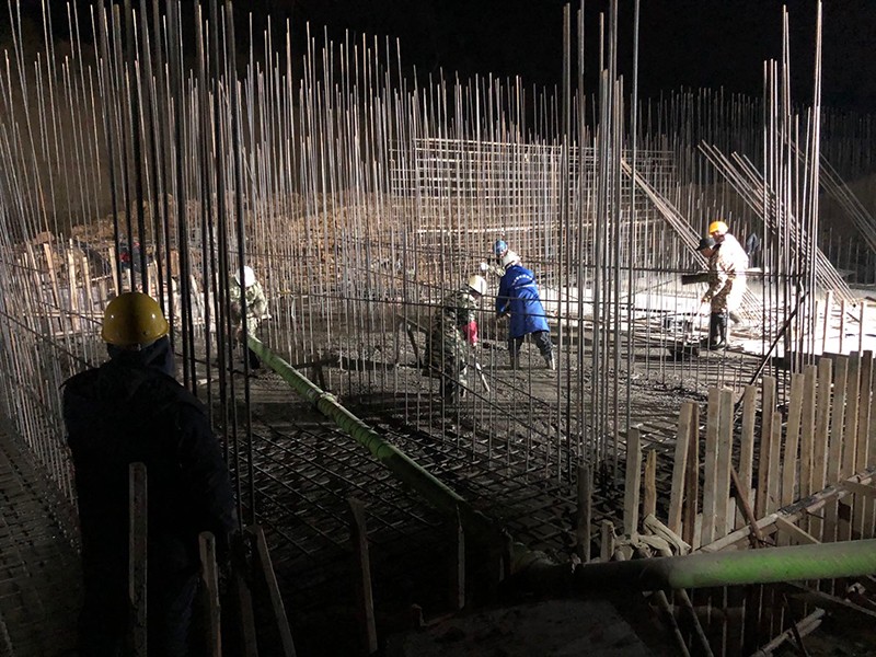 出水渠翼墻底板混凝土夜間澆筑