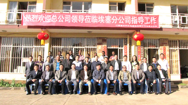 2013年2月12日,農歷大年初三,新春伊始,公司董事長、總經(jīng)理王元旦率領部分高層管理人員和部分部門負責人一行13人來到埃塞俄比亞,給埃塞分公司員工帶來了新春的祝福和慰問,并現(xiàn)場召開了“江西省水利水電建設有限公司海外工作會議”,會議由張周平副總經(jīng)理主持。