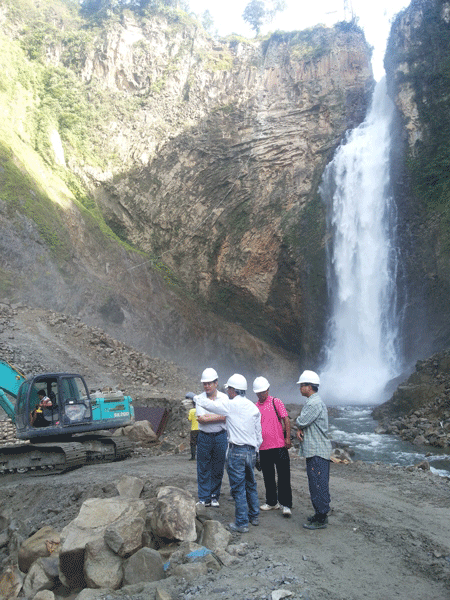 9月20日上午8時,王總一行抵達(dá)印尼棉蘭國際機場,隨即轉(zhuǎn)機前往PAKKAT水電站項目所在地。在項目經(jīng)理孫小軍等的陪同下,王總不辭辛苦深入到大壩施工區(qū),認(rèn)真察看了大壩、發(fā)電隧洞等施工現(xiàn)場,他與現(xiàn)場施工人員一一握手并表示節(jié)日的慰問。王總察看施工現(xiàn)場并聽取匯報后,對大壩的建設(shè)情況以及工程外觀形象控制表示滿意,并結(jié)合自己的經(jīng)驗對豎井的施工提出了建設(shè)性建議,重點強調(diào)了豎井施工安全生產(chǎn)的重要性。