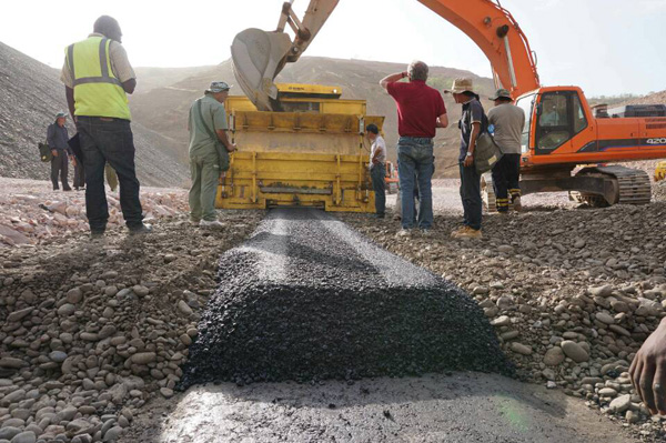 集團(tuán)資訊 埃塞俄比亞旱季熾熱的風(fēng)撲打著人們的面龐,也映襯了瀝青混凝土芯墻現(xiàn)場(chǎng)火熱的施工場(chǎng)景。自從2015年3月6日簽訂合同以來,Wolkite瀝青混凝土項(xiàng)目施工緊鑼密鼓,在進(jìn)行了大量實(shí)驗(yàn)和前期準(zhǔn)備的基礎(chǔ)上,取得了實(shí)質(zhì)性進(jìn)展,截止5月15日已完成從804m高程至816m高程的填筑,余下工作正有序進(jìn)行。