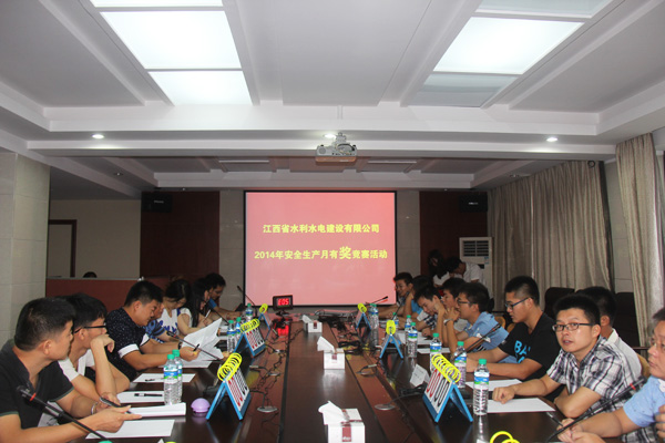 根據(jù)《江西省水利廳關(guān)于開(kāi)展2014年水利安全生產(chǎn)月宣傳活動(dòng)的通知》(贛水安監(jiān)字[2014]18號(hào))的要求和公司2014年安全生產(chǎn)宣傳月活動(dòng)方案的部署,2014年7月15日上午,由技術(shù)質(zhì)安部牽頭組織,在公司22樓會(huì)議室舉辦了2014年公司安全生產(chǎn)月安全知識(shí)競(jìng)賽活動(dòng)。