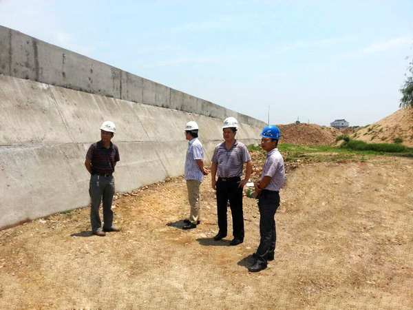隨后,王總一行又馬不停蹄地趕往江西省五河治理防洪工程鉛山縣城西堤畜牧場至劉家洲段項目施工現(xiàn)場進行檢查指導(dǎo)工作。董事長兼總經(jīng)理王元旦實地察看了施工現(xiàn)場,仔細(xì)了解了工程情況,對項目施工質(zhì)量作出了肯定的評價。他要求項目部要強化安全意識,加快進度,確保工程質(zhì)量,按計劃完成并驗收。王總還親切慰問了一線施工人員,提醒項目經(jīng)理部要做好職工的降溫防暑工作。