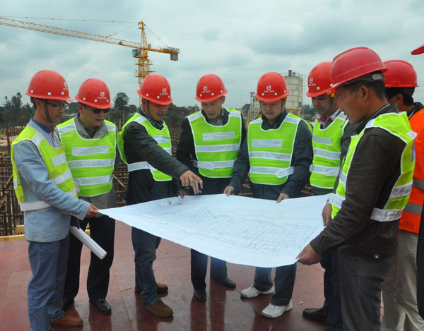 2014年8月8號(hào),公司董事長(zhǎng)王元旦、總會(huì)計(jì)師王義生,副總經(jīng)理張周平、黃鄭民一行抵達(dá)肯尼亞,開(kāi)始了為期一周的巡視指導(dǎo)工作。剛下飛機(jī),董事長(zhǎng)王元旦一行便馬不停蹄地趕往位于肯尼亞首都內(nèi)羅畢的雙河房地產(chǎn)項(xiàng)目一期、二期工地進(jìn)行視察。