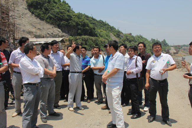 28日,學(xué)習(xí)組在七一水庫管理局葉局長及項目法人謝局長的陪同下先參觀了大壩施工現(xiàn)場,然后參觀了溢洪道。七一水庫除險加固工程由我公司承建,工程質(zhì)量多次受到水利部、省水利廳、地方政府領(lǐng)導(dǎo)的好評。在參觀現(xiàn)場,負責該項目施工的項目經(jīng)理彭燦華就如何抓好工程質(zhì)量管理問題向大家作了簡要介紹;總工程師吳鐵凡就如何運用施工技術(shù)、施工工藝來保證工程質(zhì)量進行了講解;董事長總經(jīng)理王元旦用風(fēng)趣幽默的提問方式,結(jié)合施工現(xiàn)場情況,對工程質(zhì)量管理的五要素“人、機、料、法、環(huán)”逐一進行了分析闡述,他指出,人是工程管理的首要因素,也是決定因素,如果人沒有質(zhì)量意識,根本不可能生產(chǎn)出讓顧客滿意的產(chǎn)品。同時強調(diào),質(zhì)量是企業(yè)的生命,是企業(yè)發(fā)展的根本保證,在市場競爭十分激烈的今天,如何提高施工質(zhì)量管理水平是每一位項目經(jīng)理、每一位管理者必須不斷思考的問題,他要求大家要向七一水庫施工項目部學(xué)習(xí),學(xué)習(xí)他們抓好每道工序,把握每個環(huán)節(jié),注重每個細節(jié),踏實做好工程質(zhì)量的敬業(yè)精神,爭取多創(chuàng)優(yōu)良工程、精品工程,進一步提高公司的市場聲譽。