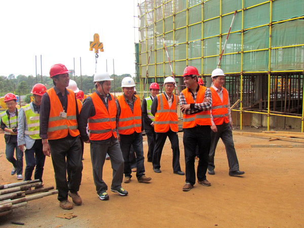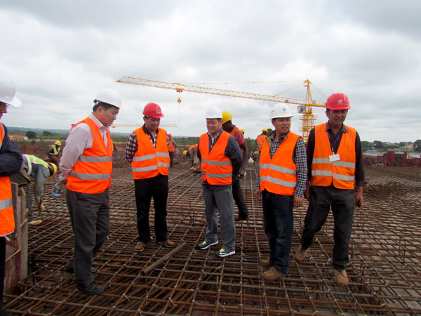 2014年12月1日上午,公司董事長王元旦、副總經理張周平、黨委副書記王延軍、副總經理黃鄭民一行聯合體江西晶太公司董事長淦晶、公司肯尼亞辦事處主任賀翔等前往肯尼亞雙河項目施工現場進行視察,檢查項目進展情況。