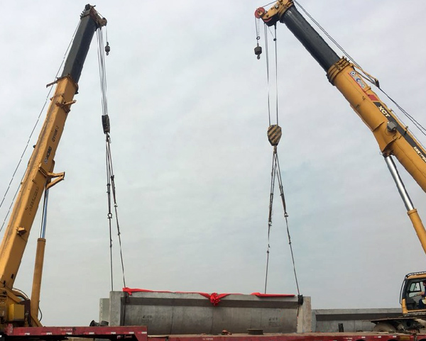廖坊灌區二期工程PPP項目為國家“十三五”期間172項重大水利工程之一,也是我公司首個“PPP” 項目;總投資12.9億,其中建安投資7.83億。2018年1月15日上午十時許,在業主、監理等參建單位人員的注視下,伴隨著禮炮的轟鳴,下幕塘渡槽順利完成了首跨槽身的吊裝。首跨渡槽的吊裝為項目的按期完成打下堅實基礎,同時也為我司積累了現代化裝配式建筑的施工經驗。