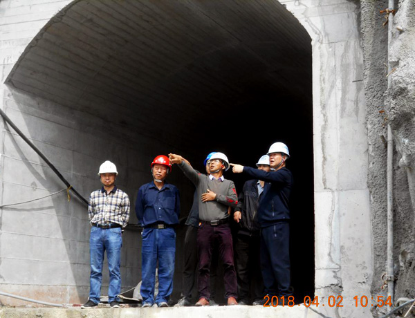 董事長(zhǎng)在導(dǎo)流洞出口聽取項(xiàng)目經(jīng)理匯報(bào)工程進(jìn)展情況