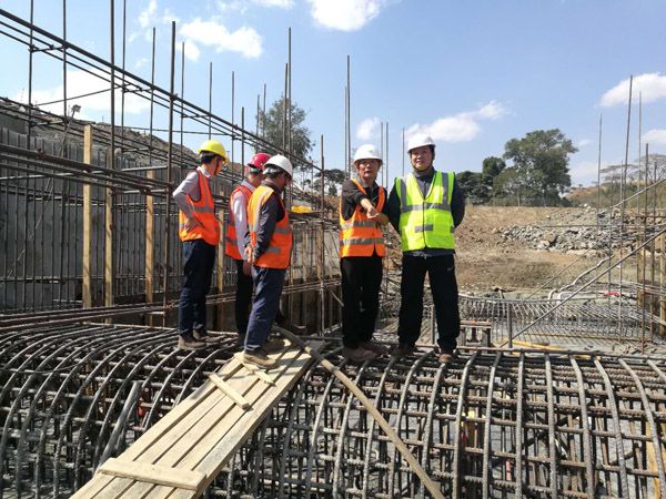 在項目現(xiàn)場,王元旦董事長重點察看了大壩進(jìn)水口工作面包括大壩基礎(chǔ)混凝土的澆筑、取水隧洞的施工情況,聽取了項目進(jìn)展情況匯報。王元旦董事長對項目安全生產(chǎn)、質(zhì)量及進(jìn)度情況表示滿意,他鼓勵項目部同志再接再厲,注重安全生產(chǎn),嚴(yán)把質(zhì)量關(guān),按期完成施工任務(wù),努力把該項目打造成江西水建精品工程,提升公司在盧旺達(dá)國家、世界銀行組織的知名度。