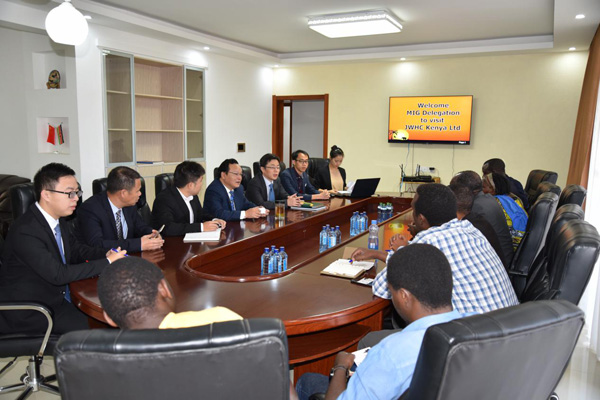 9月23日上午,盧旺達MIG考察團一行來我肯尼亞公司參觀。海外公司總經理黃鄭民,肯尼亞分公司總經理賀翔,肯尼亞分公司副總經理彭紅軍,肯尼亞分公司商務經理黃飛翔,肯尼亞分公司財務經理程炤宇等參加了會見。