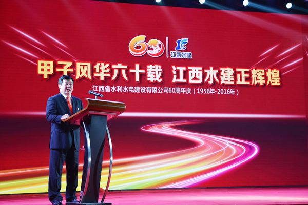 六十年風(fēng)雨征程光陰荏苒;一甲子滄桑巨變歲月如歌。今天,我們相聚在這里,共同慶祝江西水建成立60周年,一起回顧公司60年的艱苦創(chuàng)業(yè),齊心展望公司的美好前景。借此機(jī)會(huì),我謹(jǐn)代表公司海內(nèi)外全體員工,向蒞臨大會(huì)的各級(jí)領(lǐng)導(dǎo)、各位來(lái)賓表示最熱烈的歡迎和衷心的感謝!向長(zhǎng)期以來(lái)關(guān)心和支持公司成長(zhǎng)和發(fā)展的新老領(lǐng)導(dǎo)、有關(guān)單位和部門(mén)、合作伙伴以及社會(huì)各界朋友表示最誠(chéng)摯的謝意!向曾經(jīng)為公司發(fā)展做出貢獻(xiàn)的歷任老領(lǐng)導(dǎo)、老同志、以及在他們身后默默奉獻(xiàn)的家屬,致以最崇高的敬意!向此時(shí)此刻依然奮戰(zhàn)在中華大地和異國(guó)他鄉(xiāng)的廣大員工,致以最親切的慰問(wèn)和最美好的祝愿!