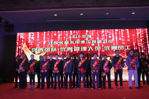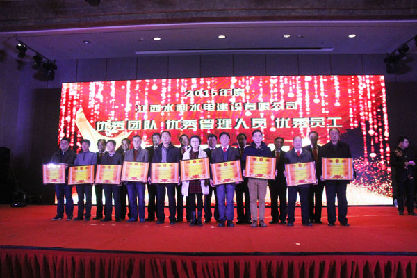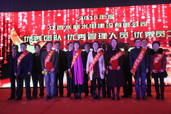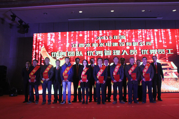 隨后,公司董事長王元旦、總經(jīng)理徐洪良和相關(guān)領(lǐng)導(dǎo)向海外公司等10個優(yōu)秀團(tuán)隊、郭洪有等22位優(yōu)秀管理者和周家煌等30位優(yōu)秀員工進(jìn)行頒獎,感謝他們在過去的2015年為江西水建發(fā)展所作出的貢獻(xiàn)。