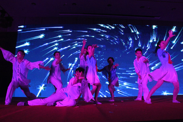 鮮紅的綢帶,迎來明媚的新春;火紅的笑臉,洋溢著節(jié)日的喜慶。隨后的文藝匯演在大合唱《新時代的水建人》中拉開帷幕,舞蹈,歌曲聯(lián)唱,雙簧,魔術(shù)等文藝節(jié)目先后上場,整場演出精彩絕倫,高潮迭起,掌聲和歡笑聲貫穿全場,現(xiàn)場成了一片歡樂的海洋。最后,公司高管登臺和大家一起同唱《團(tuán)結(jié)就是力量》,一首《團(tuán)結(jié)就是力量》把年會推向了高潮。團(tuán)結(jié)是我們的力量之源,團(tuán)結(jié)是企業(yè)騰飛的支點。同心山成玉,協(xié)力土變金。我們同是一顆心,同是一條根,同是水建人,讓我們團(tuán)結(jié)起來,肩并著肩,手牽著手,用比鐵還硬、比鋼還強(qiáng)的磅礴力量,共同譜寫公司改革創(chuàng)新加快發(fā)展的嶄新篇章。