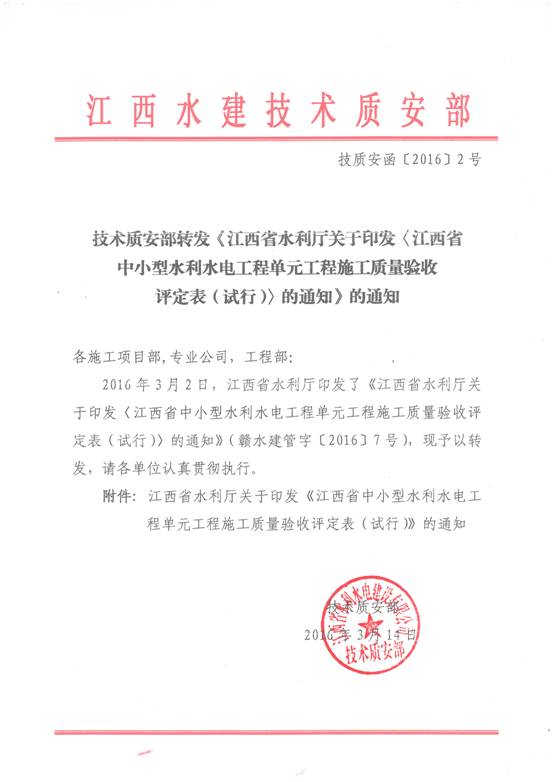 江西省中小型水利水電工程單元工程施工質量驗收評定表